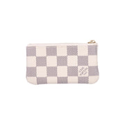 Brand new creme and navy azur coated canvas Louis Vuitton key pouch with brass keychain hardware, creme leather lining and zip closure at top. Includes box and dust bag.