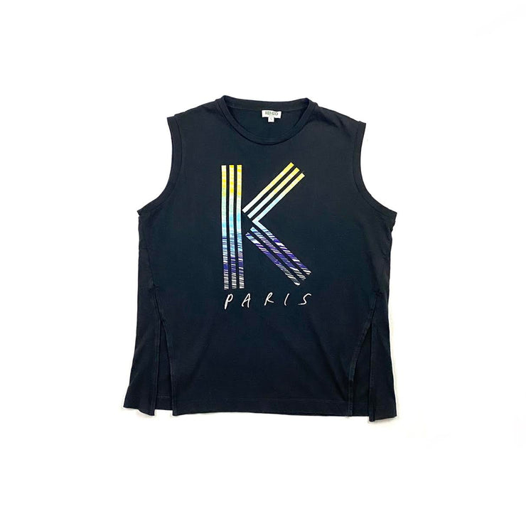 Black cotton Kenzo sleeveless tank top with "K" on chest and site slits.